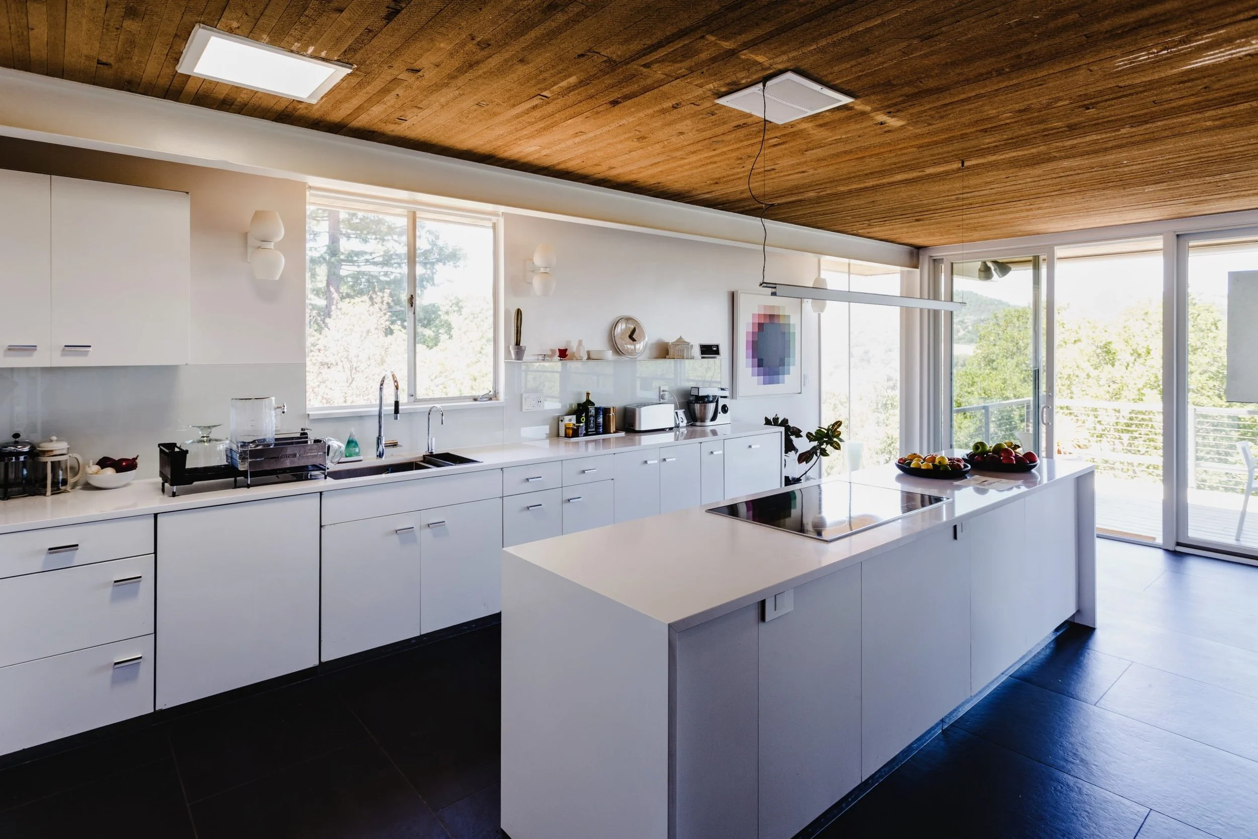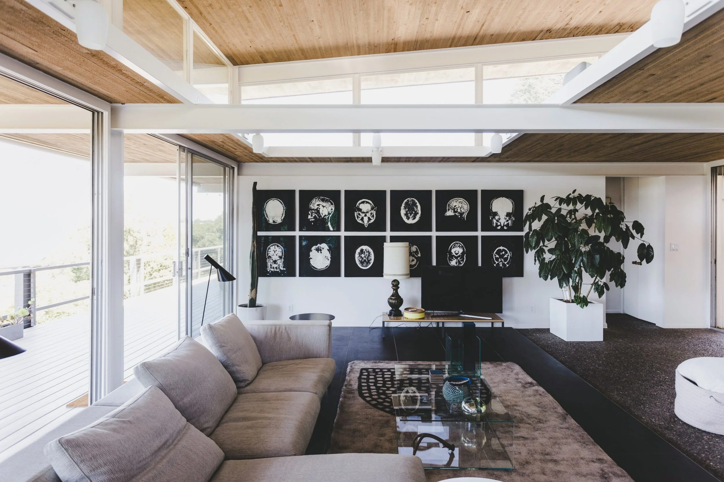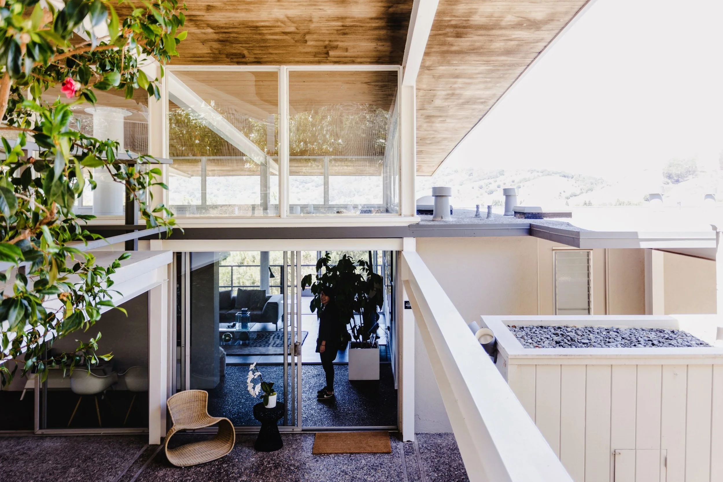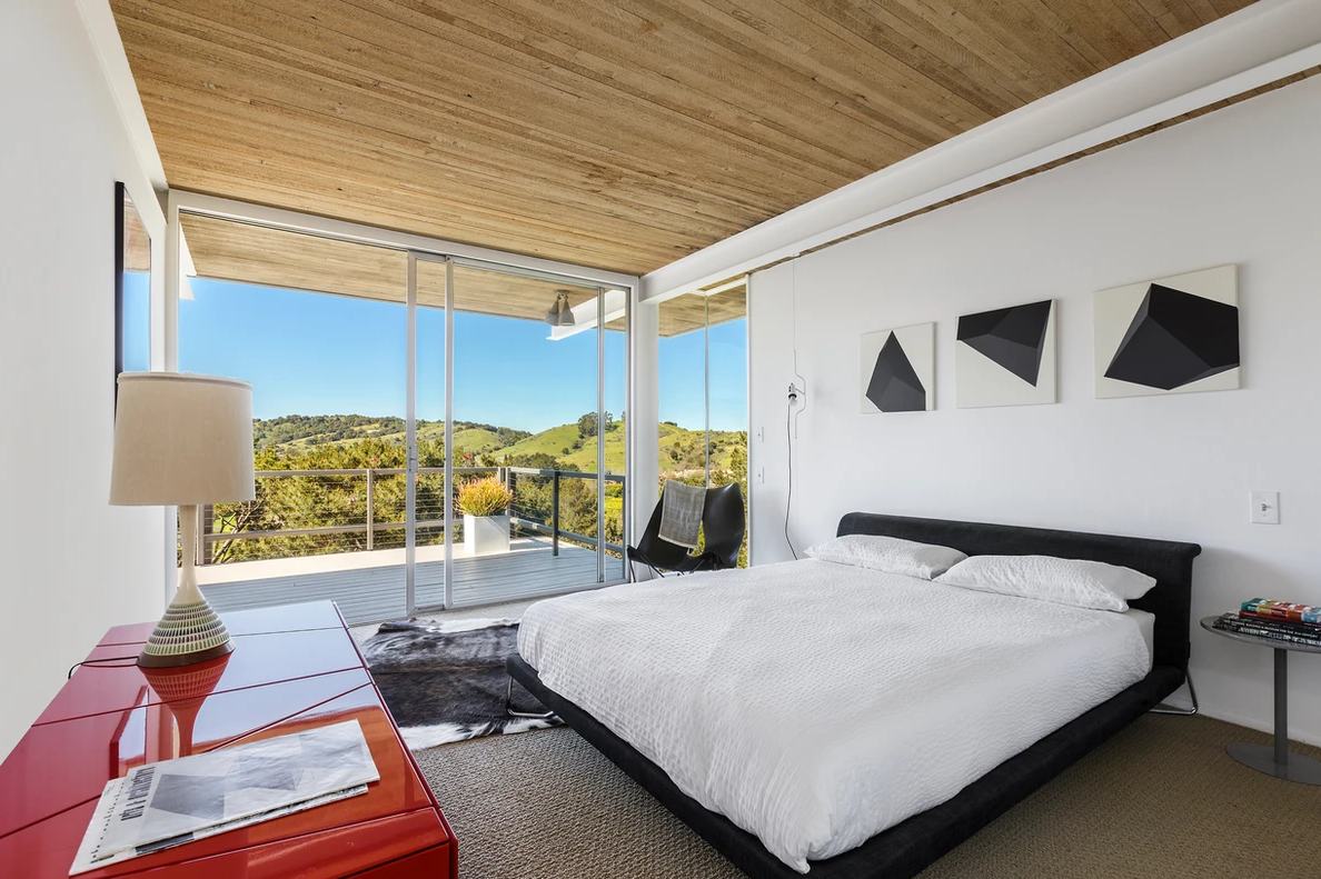 Case Study House #26 is in a quiet residential neighborhood in San Rafael - close to beach, state park and public golf course. The house is set back from the street offering full privacy.
