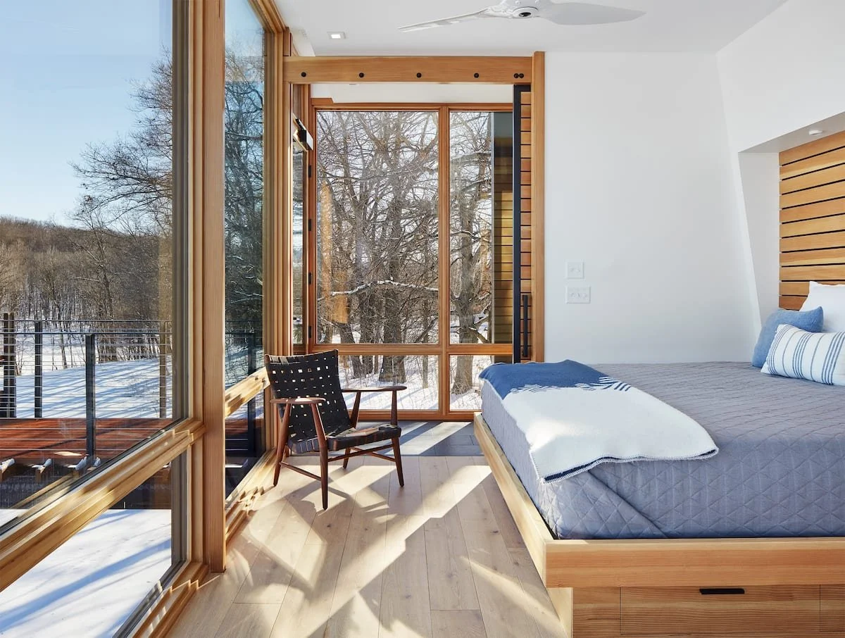 The interior is Scandinavian-inspired featuring luxe furnishings, a king-size bed and designer bathroom. All told, Metal Lark is a beacon of comfort among the beautiful Wisconsin countryside.