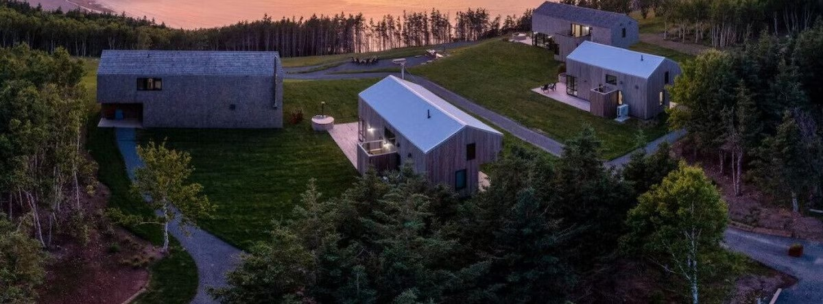 Awarded Vacation Rental of the Year 2024 by Vrbo, this Cabot Trail vacation rental is where gorgeous design meets breathtaking views. The 20ft ceilings allow for a second-story lookout through the expansive windows around the sweeping bay, over the forest, and across the water.